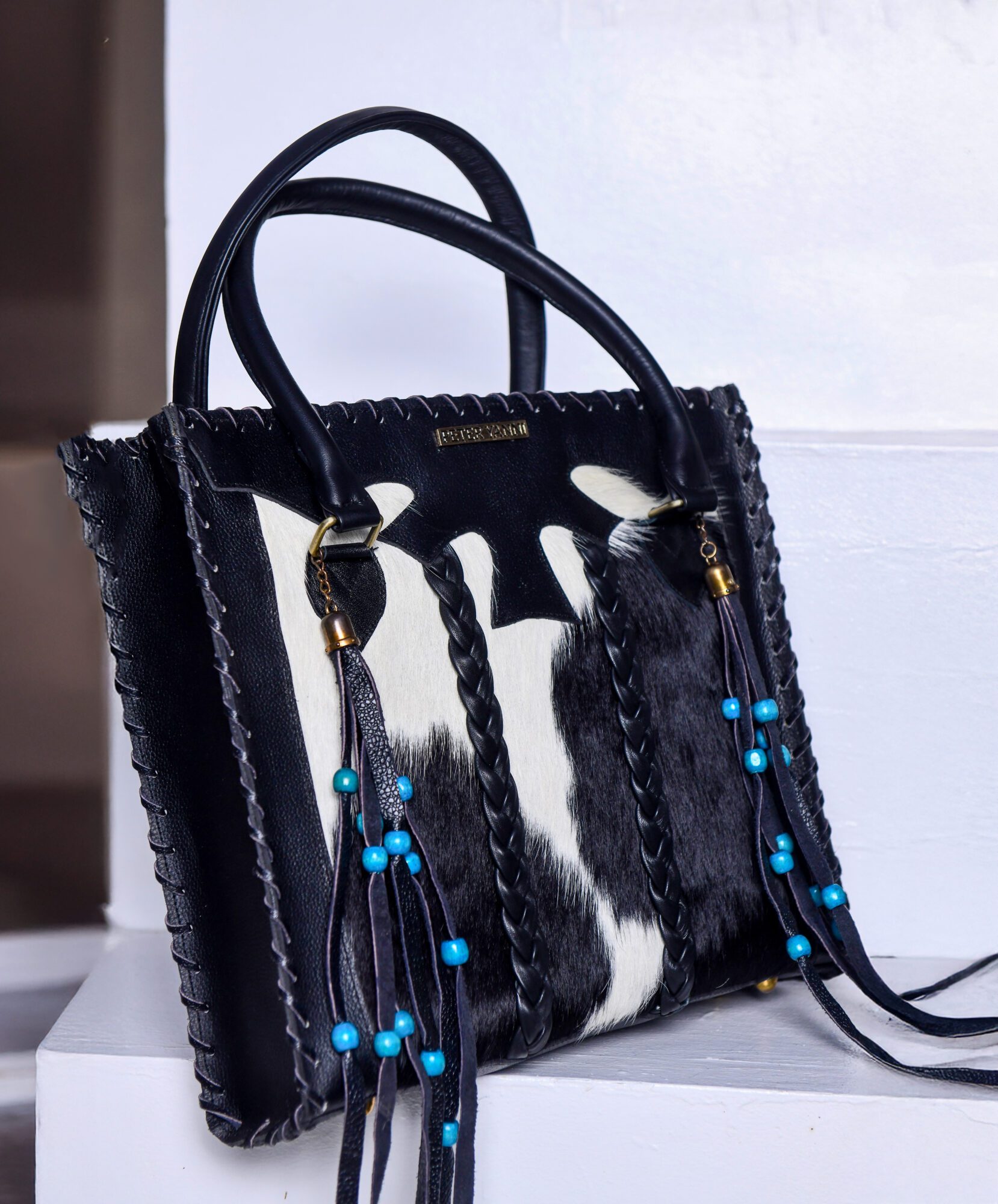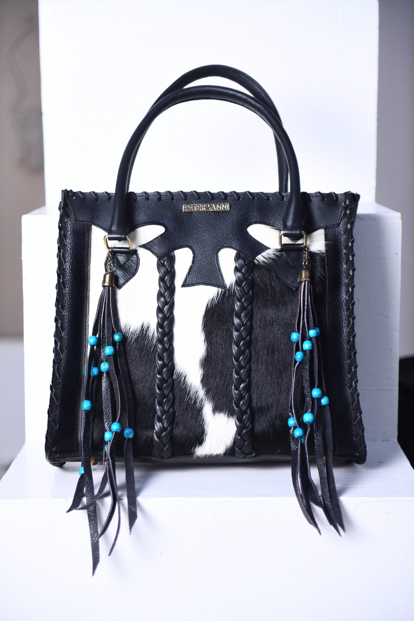 32cm x 36cm x 9 Premium cowhide & Ponyhair leather Internal genuine leather lining Back zipper pocket Internal Zipper pocket one year guarantee