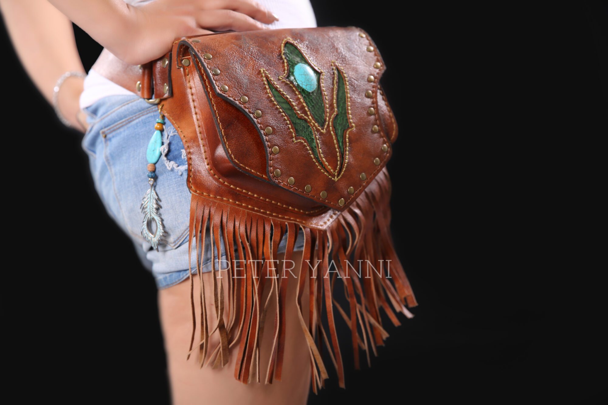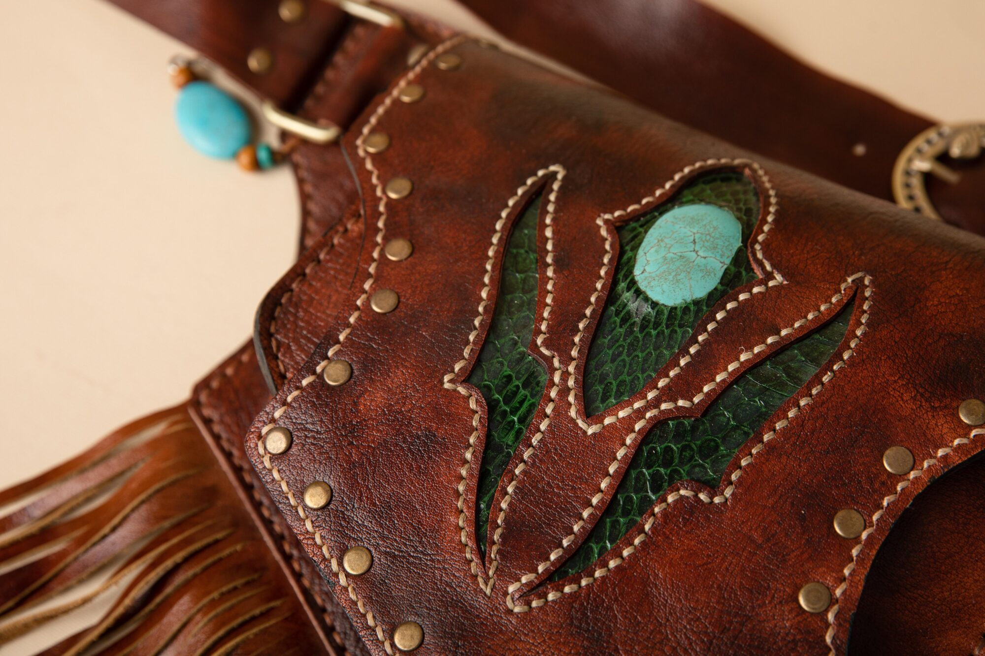33cm x 40cm x 5cm Genuine snakeskin embellishment Back zipper pocket one year guarantee