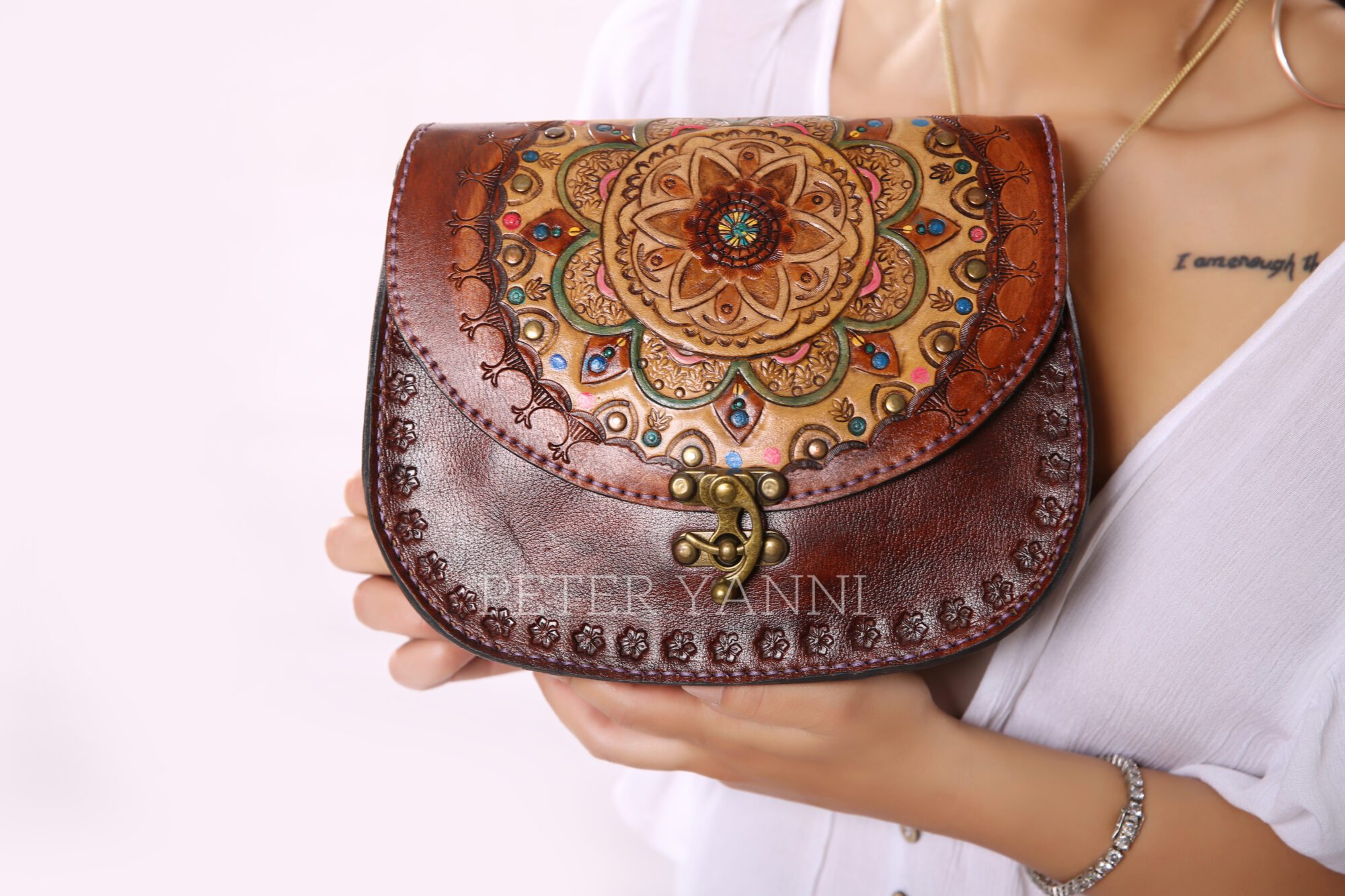 20cm x 25cm x 9cm Fully hand painted Internal genuine leather lining one year guarantee