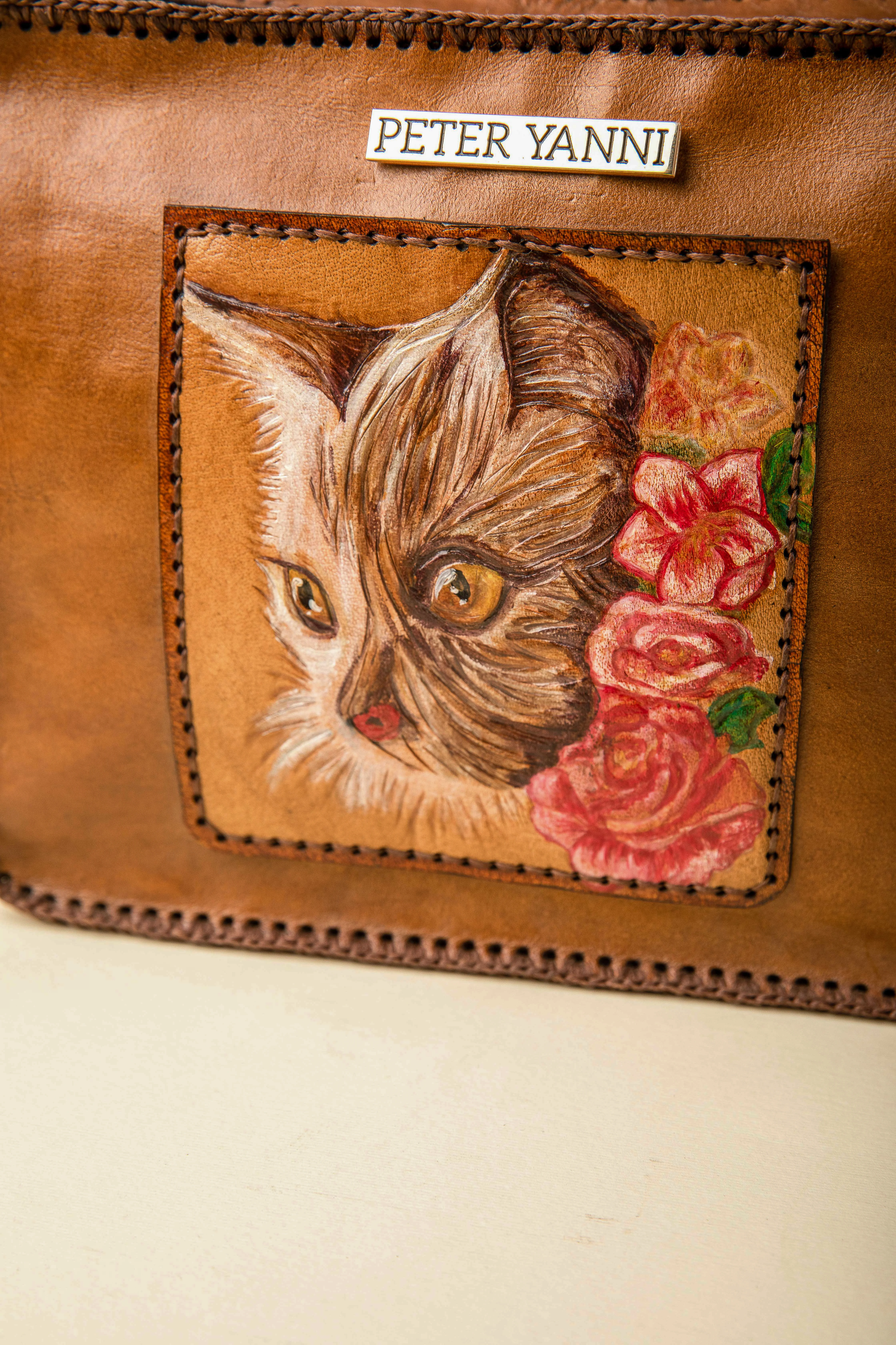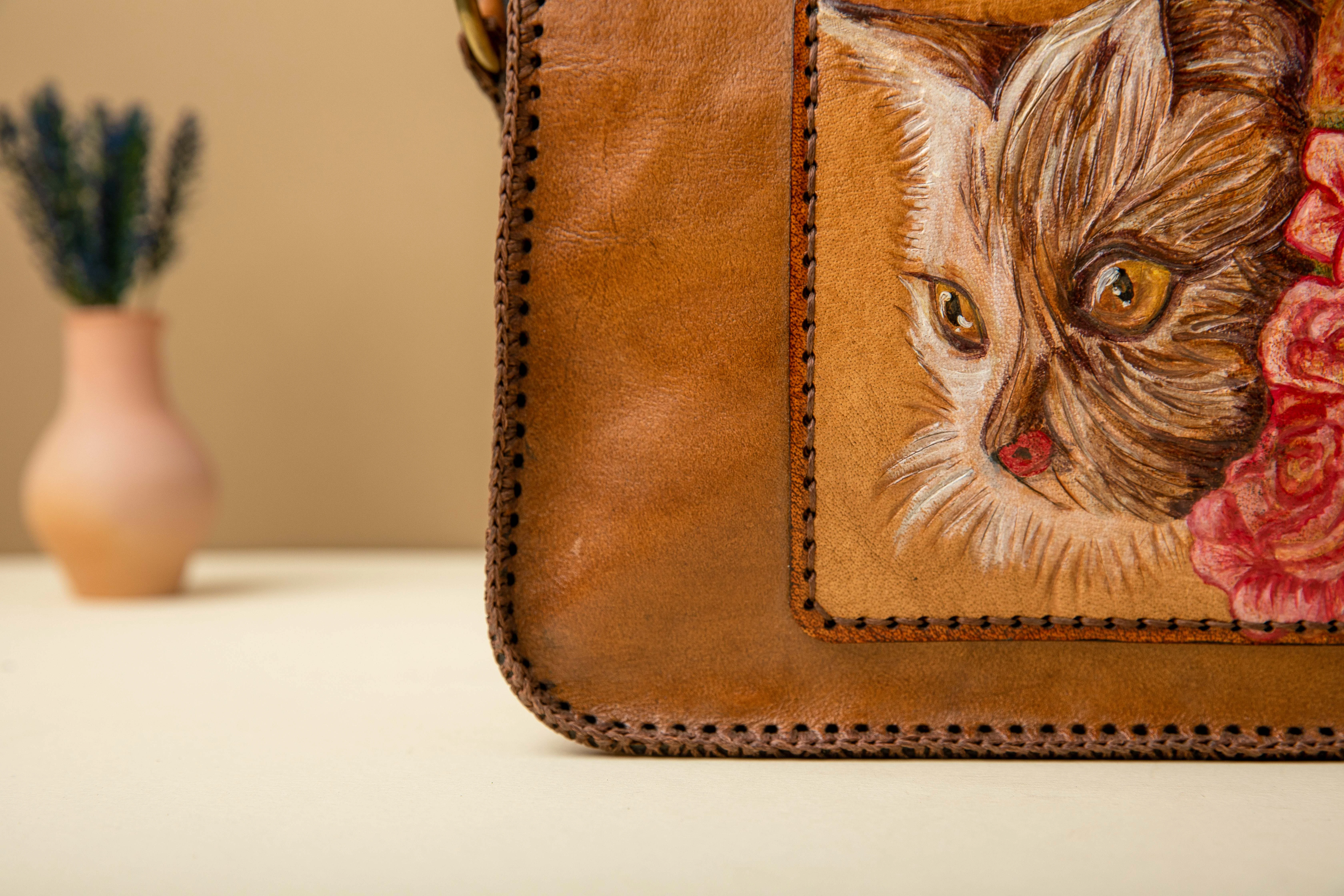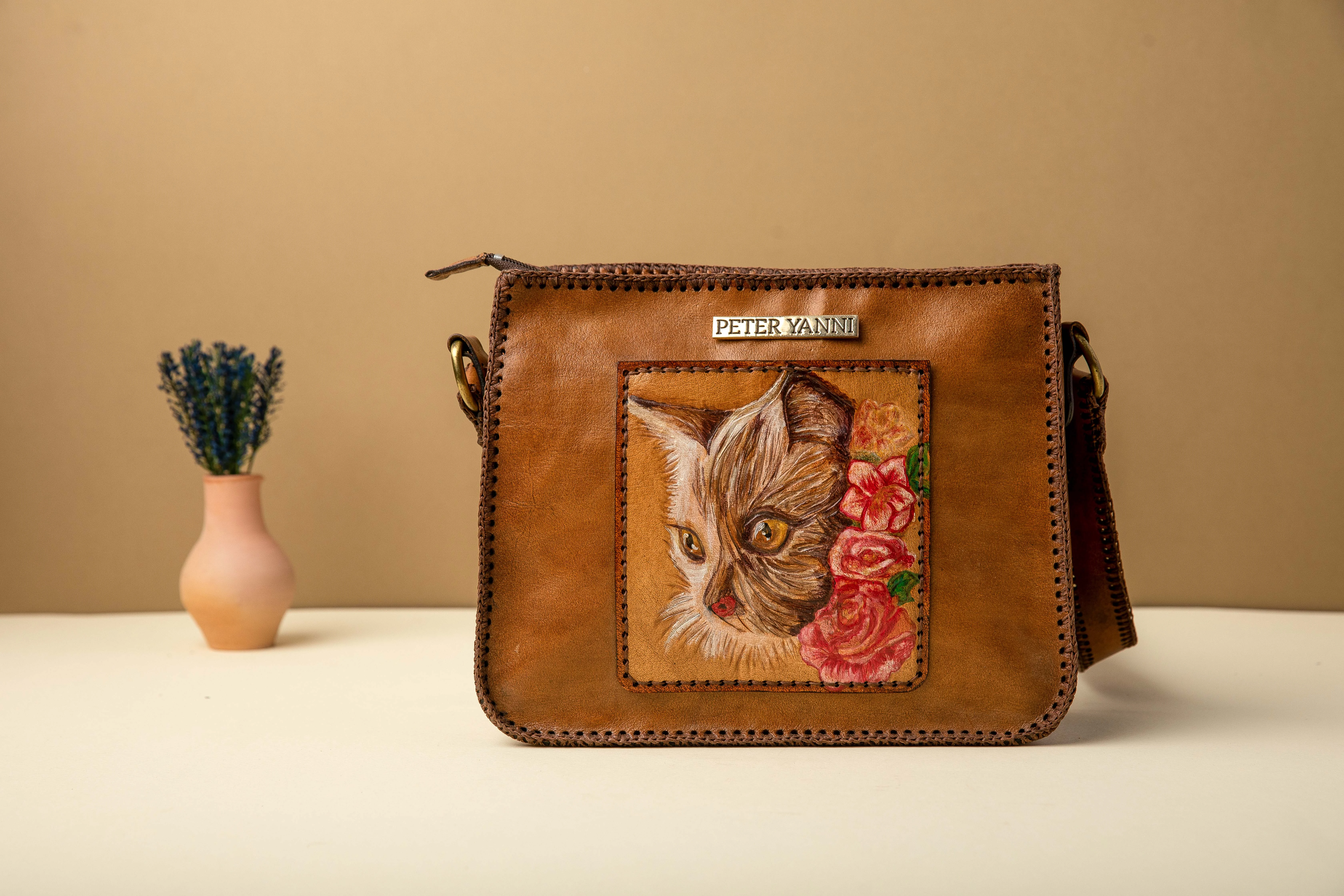 20cm x 25cm x 9cm Fully hand painted Internal genuine leather lining Back zipper pocket one year guarantee