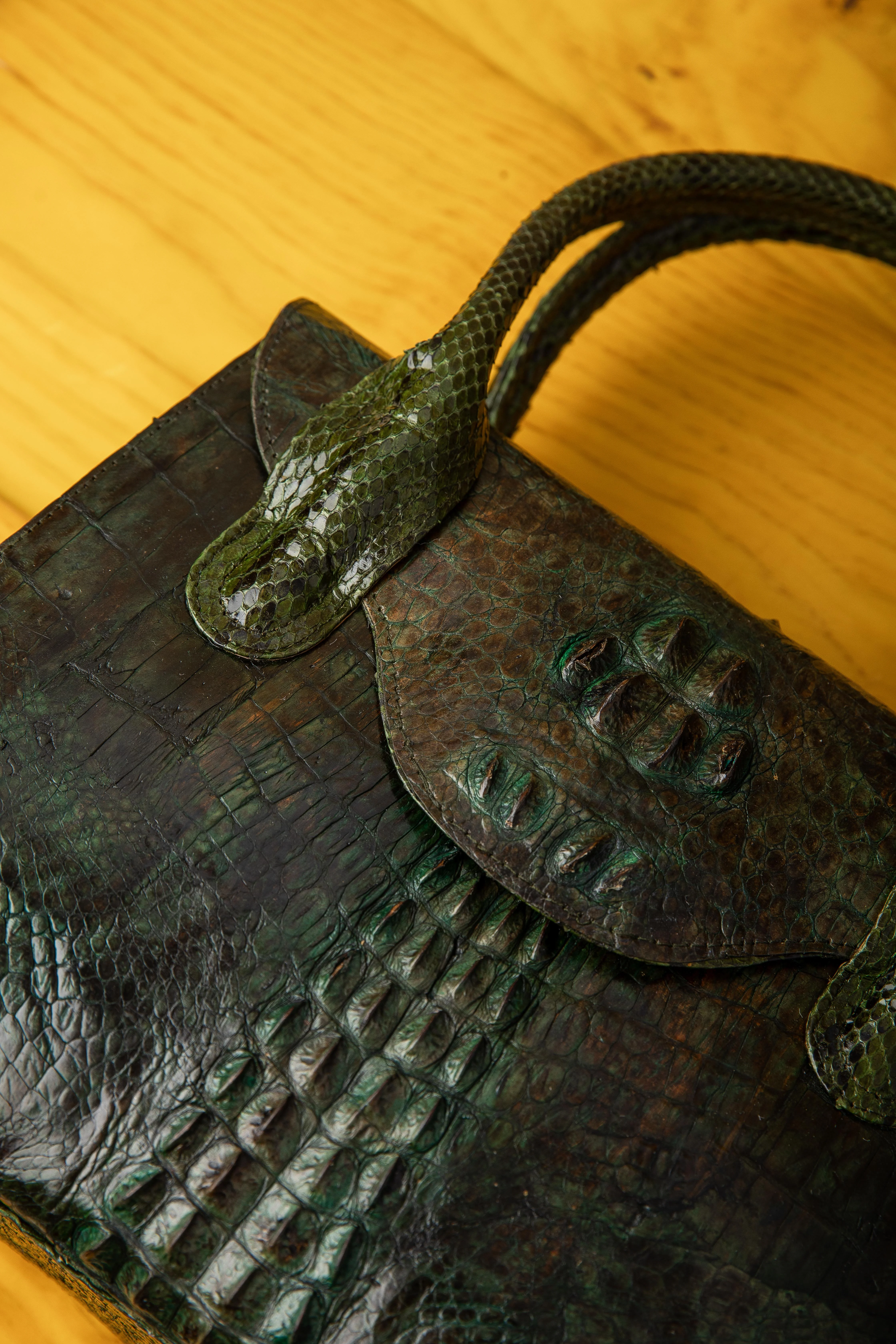 21cm x 30cm x 15cm Premium Crocodile Skin Genuine Leather lining One year Guarantee
