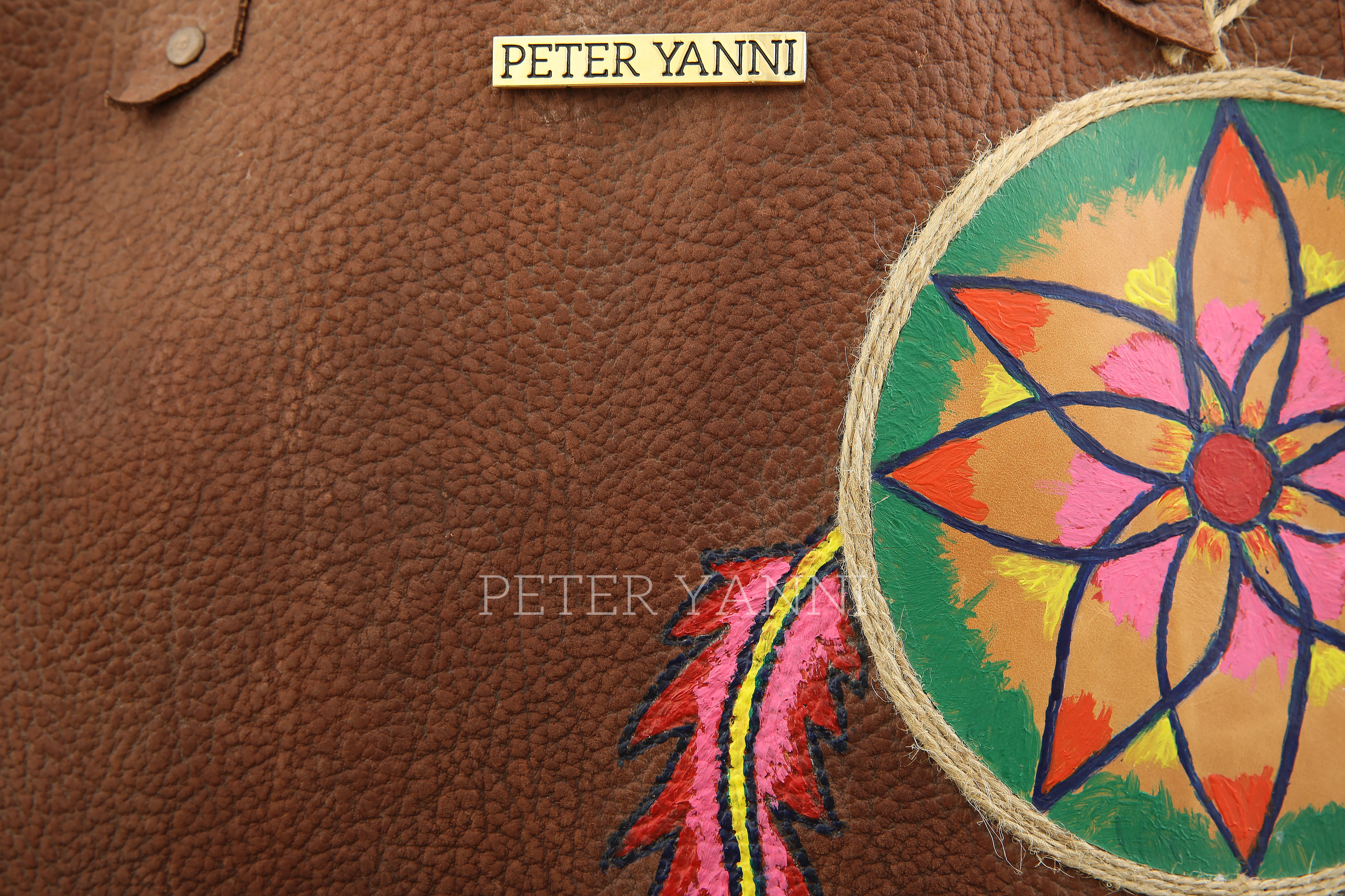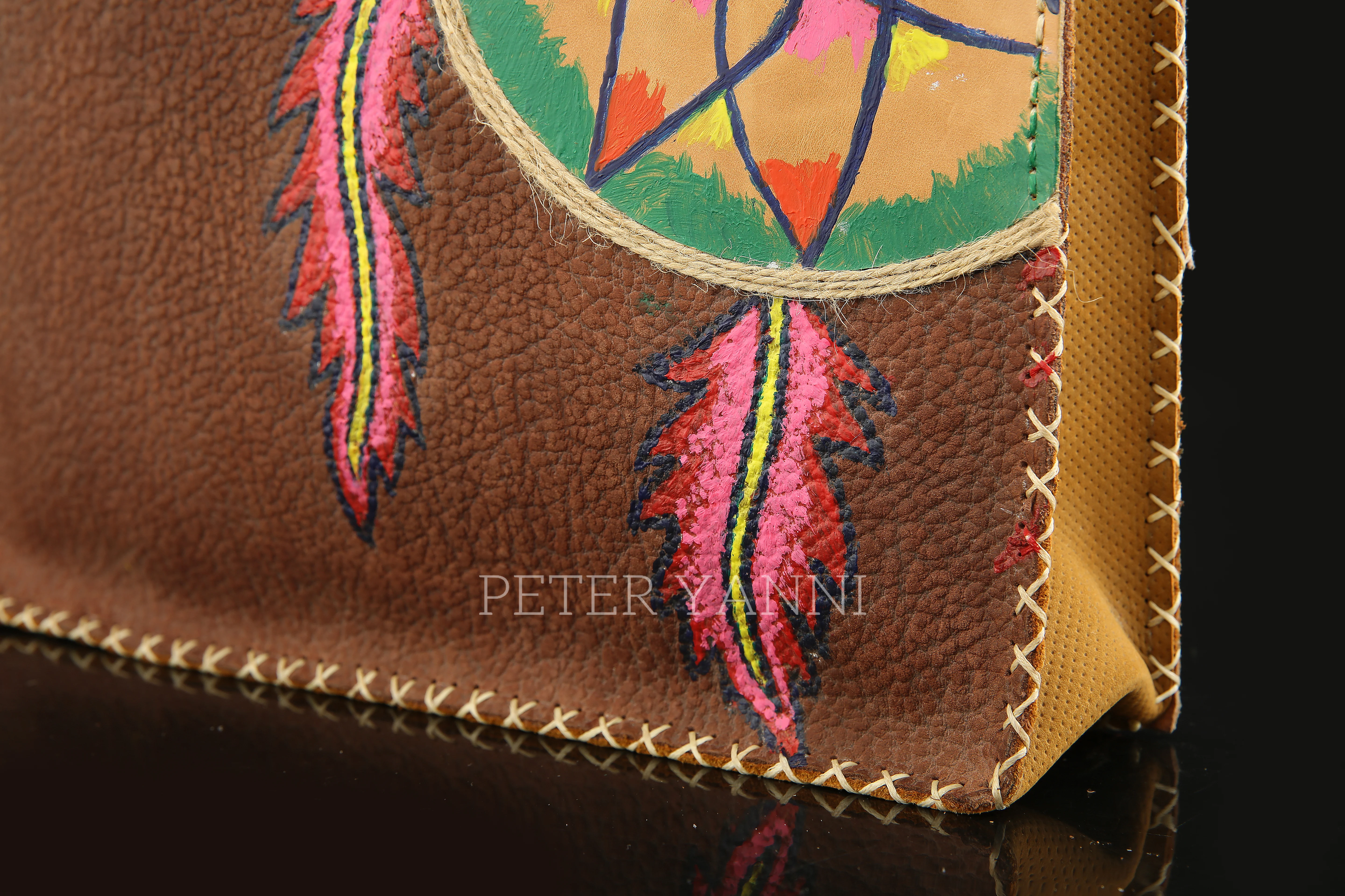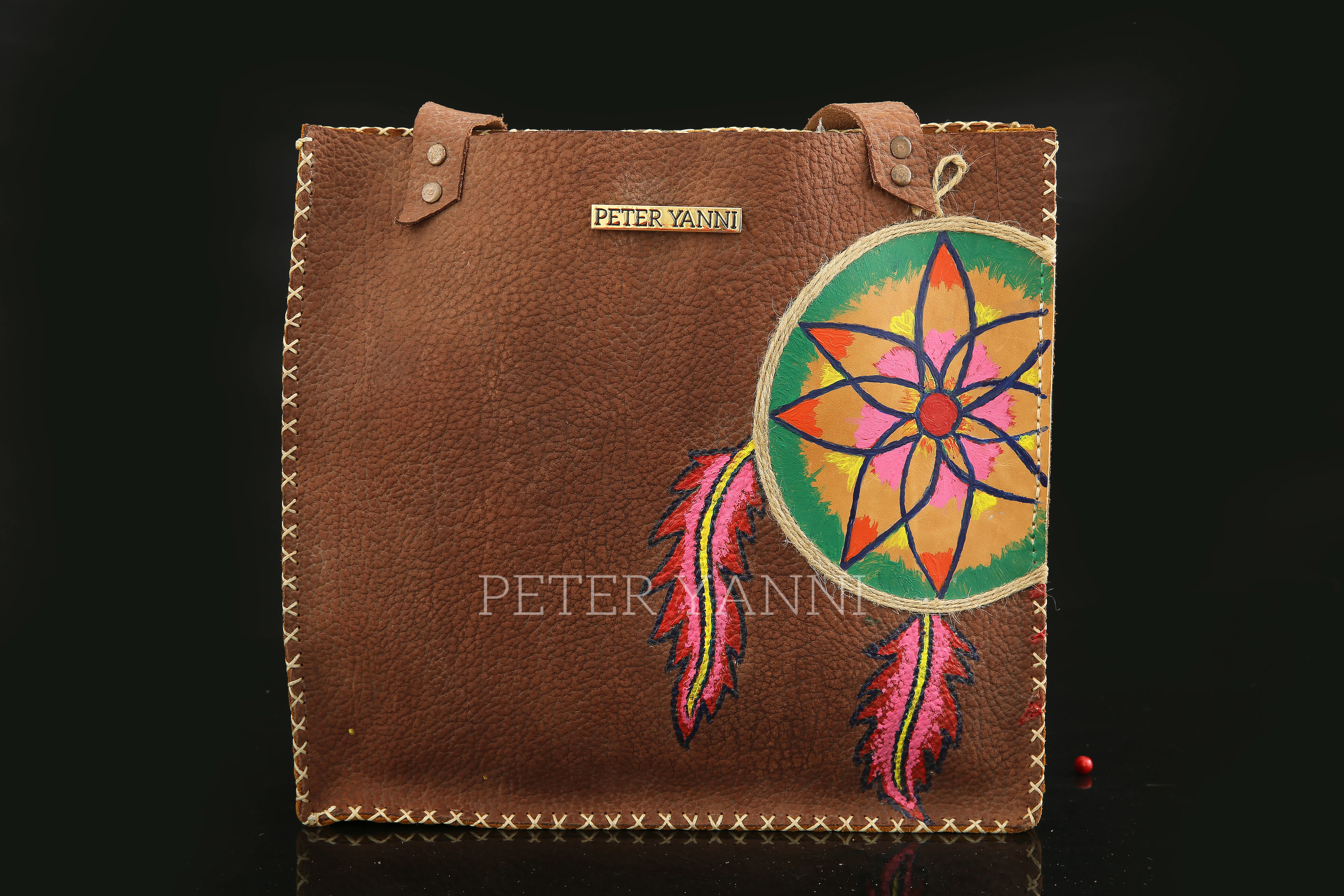 20cm x 30cm x 9cm Fully hand painted Internal genuine leather lining Back zipper pocket one year guarantee
