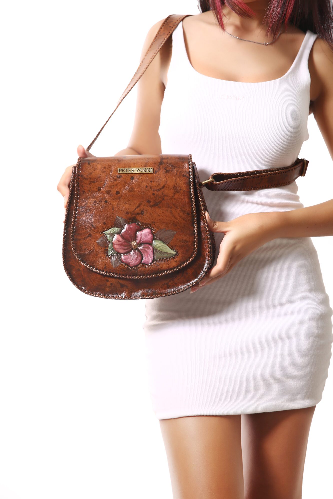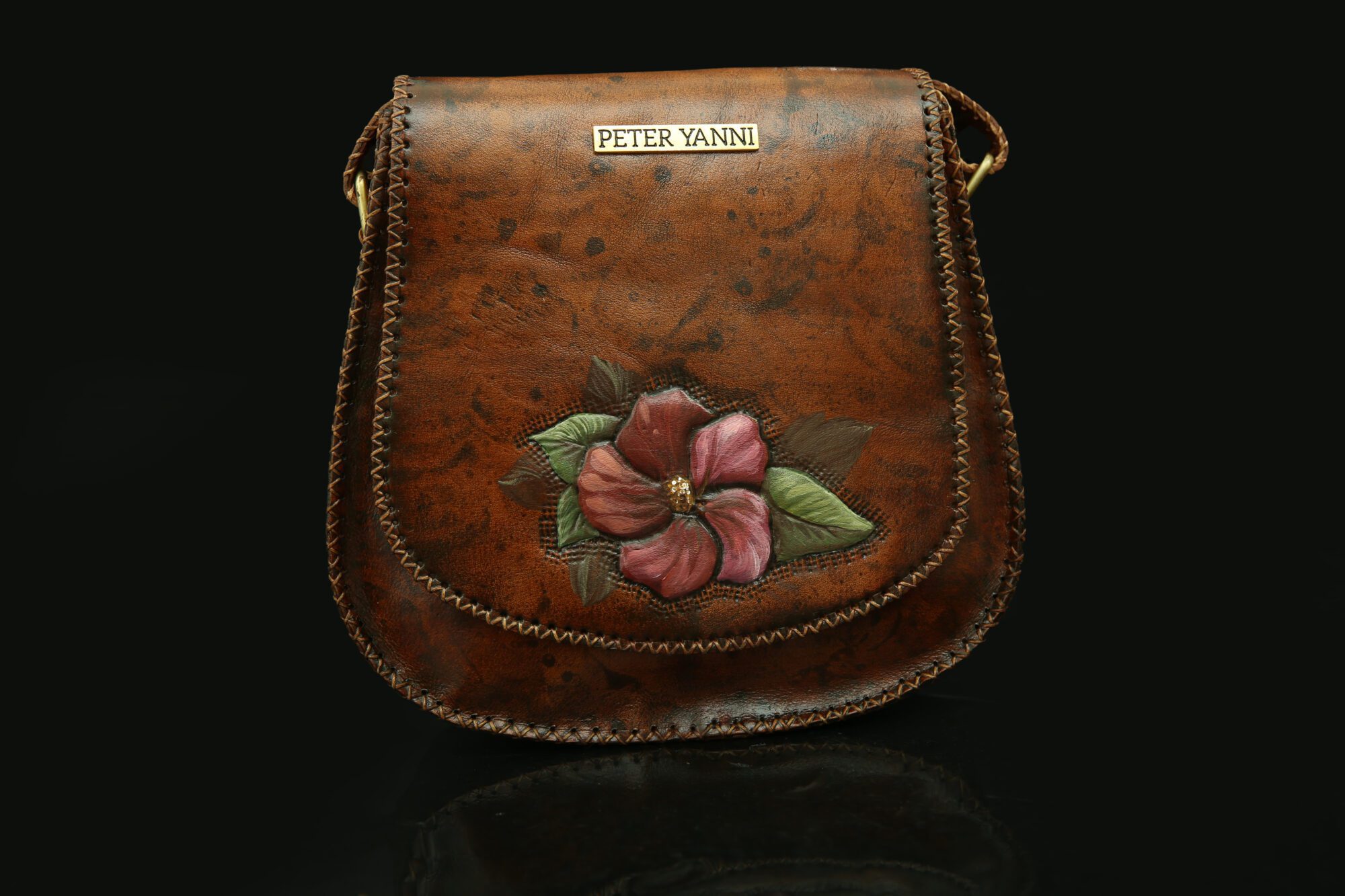 30cm x 26cm x 7cm Fully hand painted Internal genuine leather lining Back zipper pocket one year guarantee