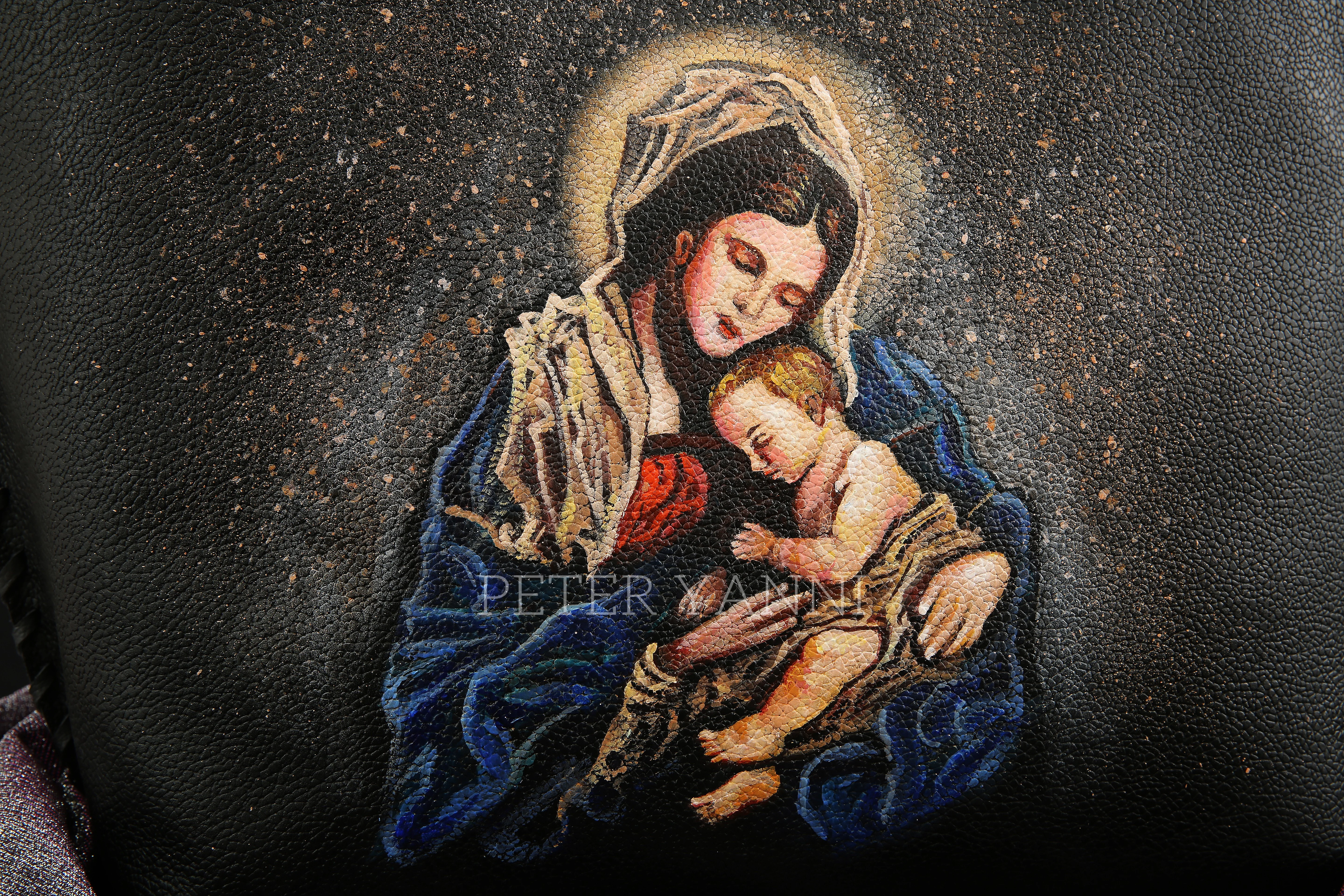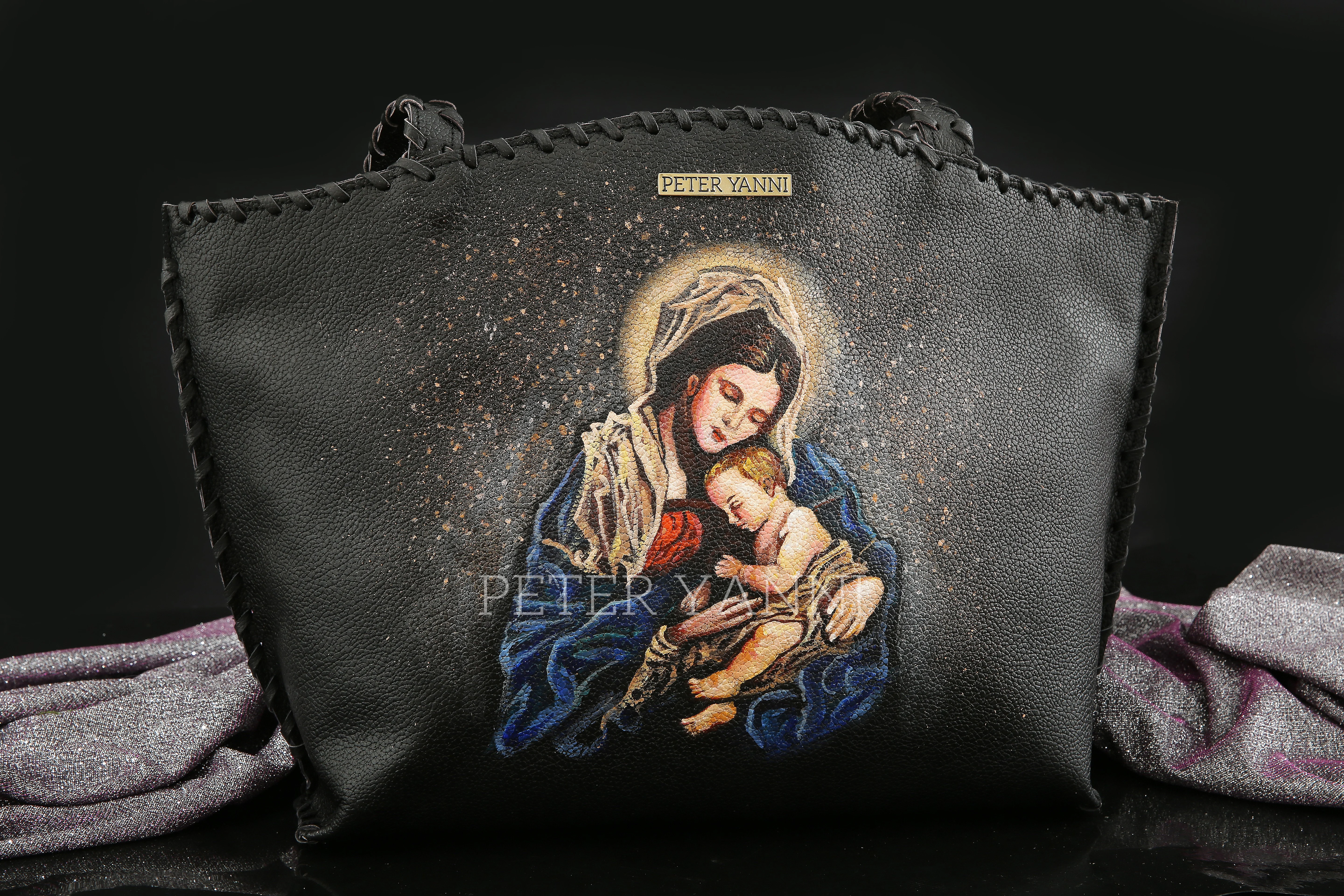 32cm x 45cm x 17cm Fully Hand Painted Genuine leather interiors Internal and back zipper pockets Top Zipper Closure One year guarantee