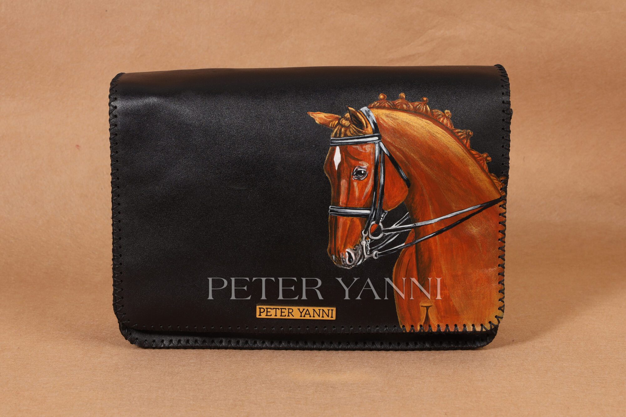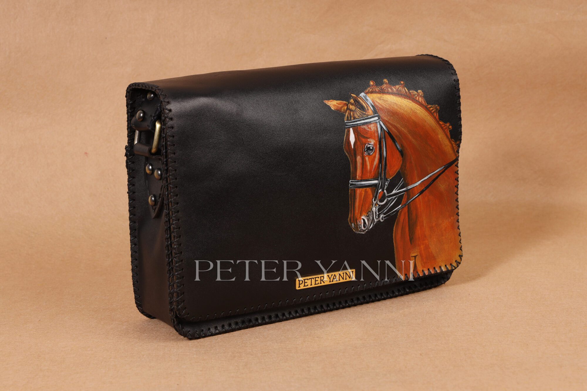 19cm x 31cm x 5cm Hand painted Back zipper pocket Shoulder strap one year guarantee