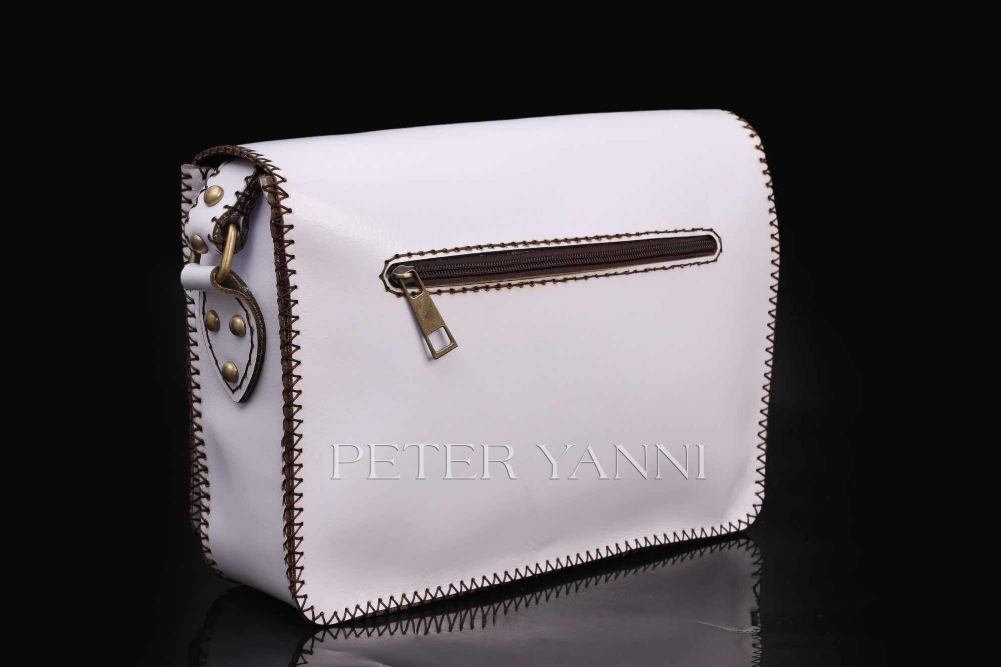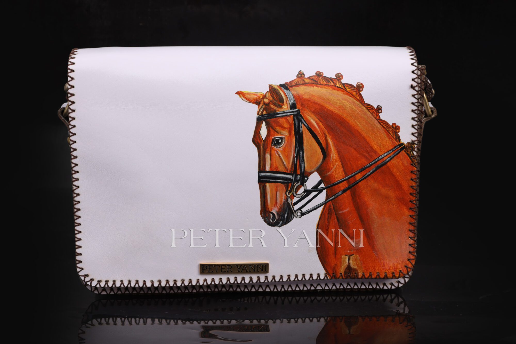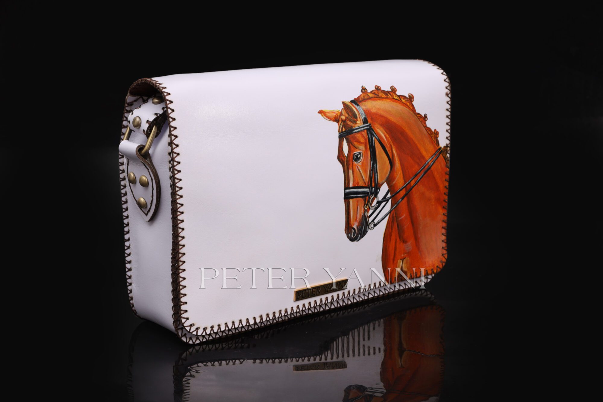 19cm x 31cm x 5cm Hand painted Back zipper pocket Shoulder strap one year guarantee