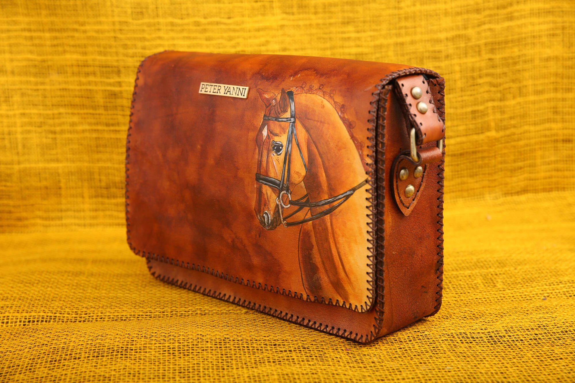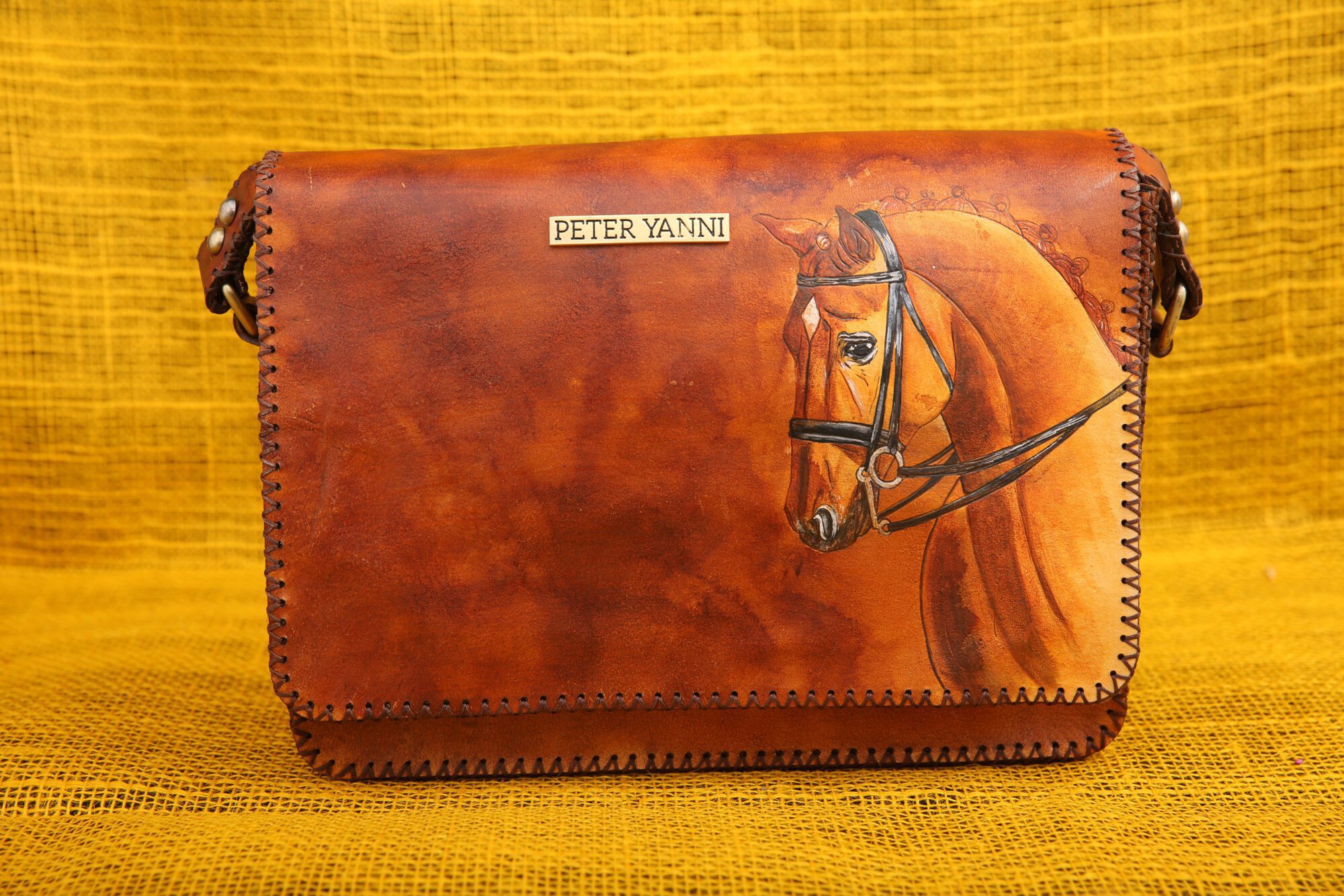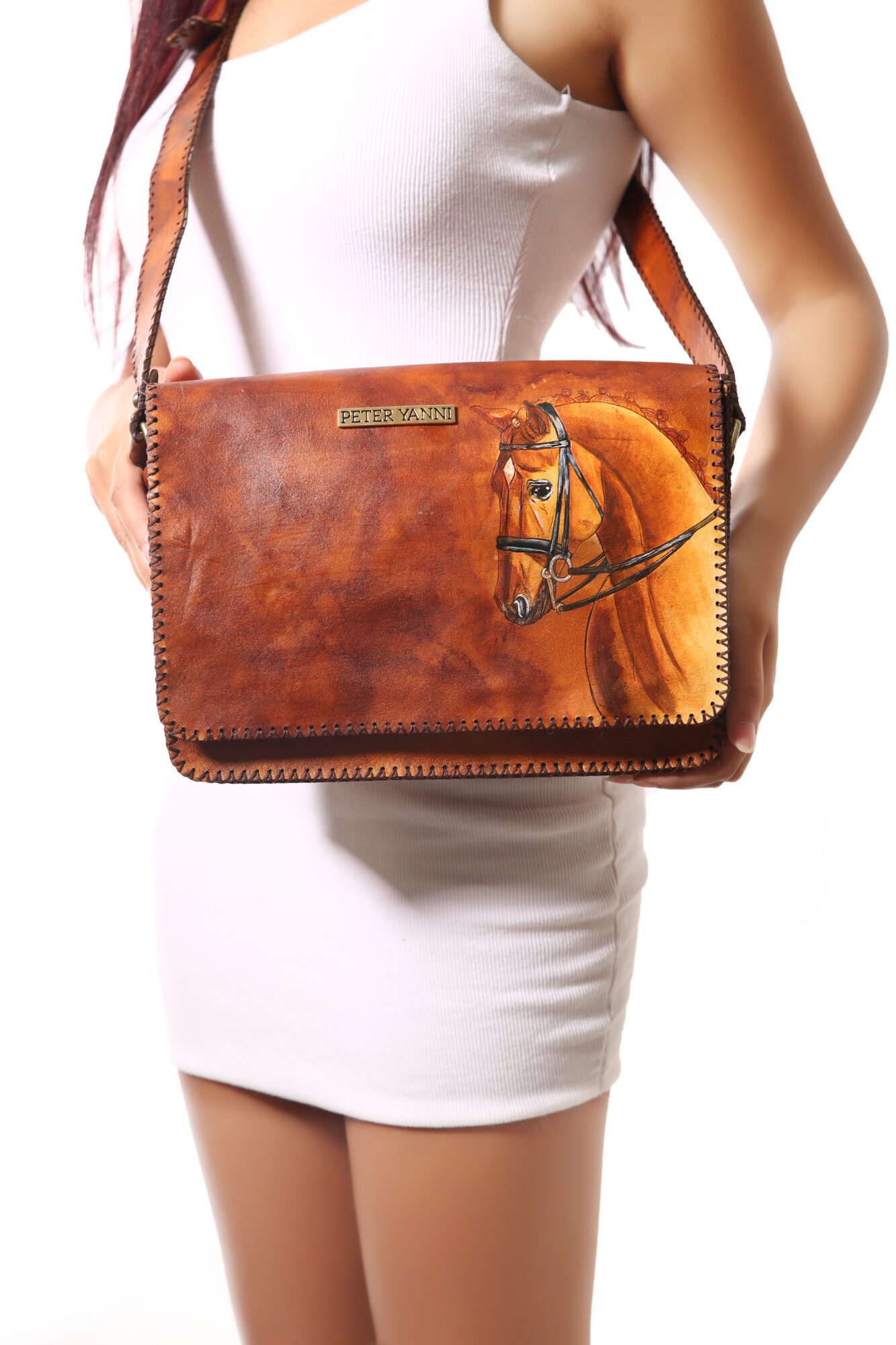 19cm x 31cm x 5cm Hand painted Back zipper pocket Shoulder strap one year guarantee