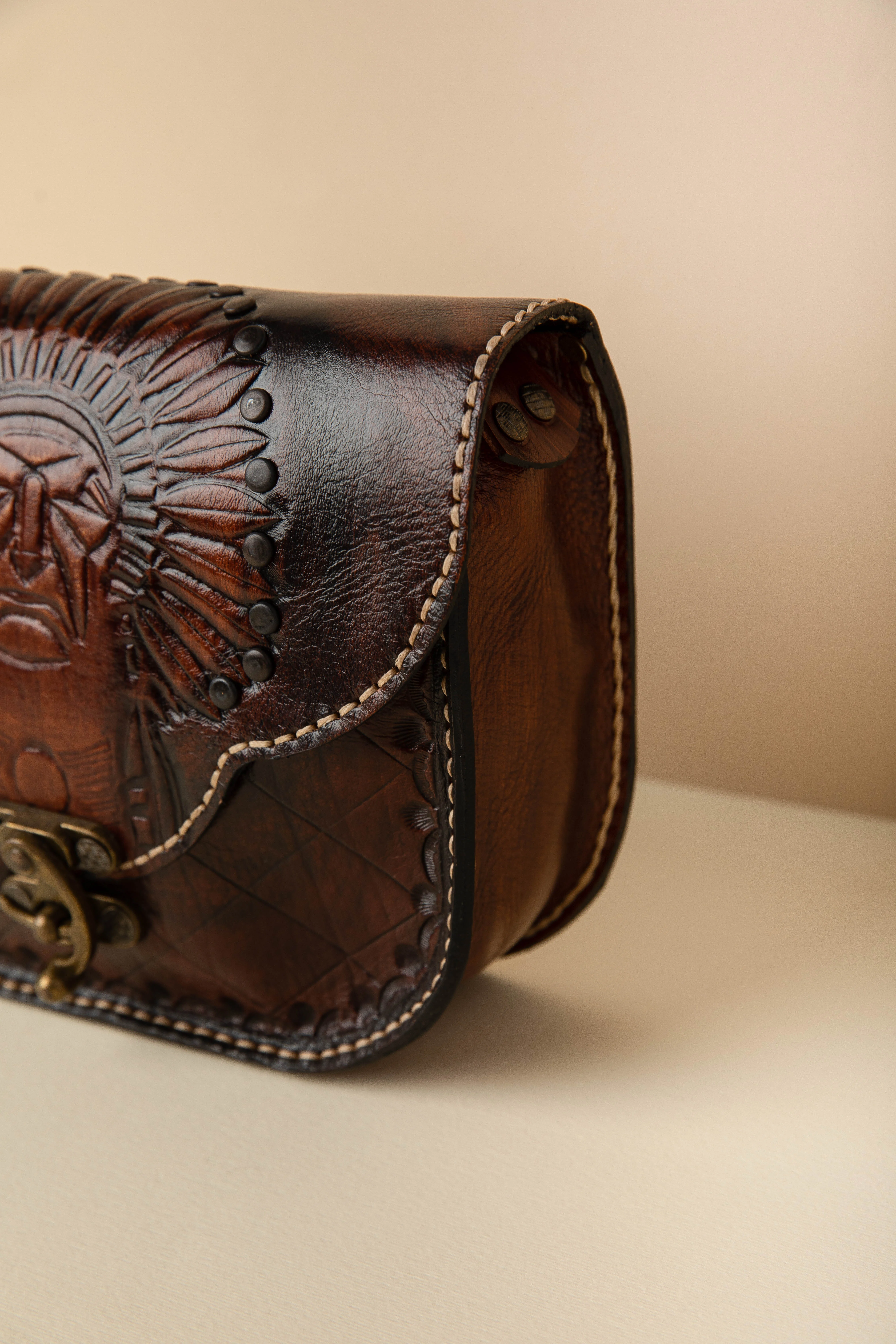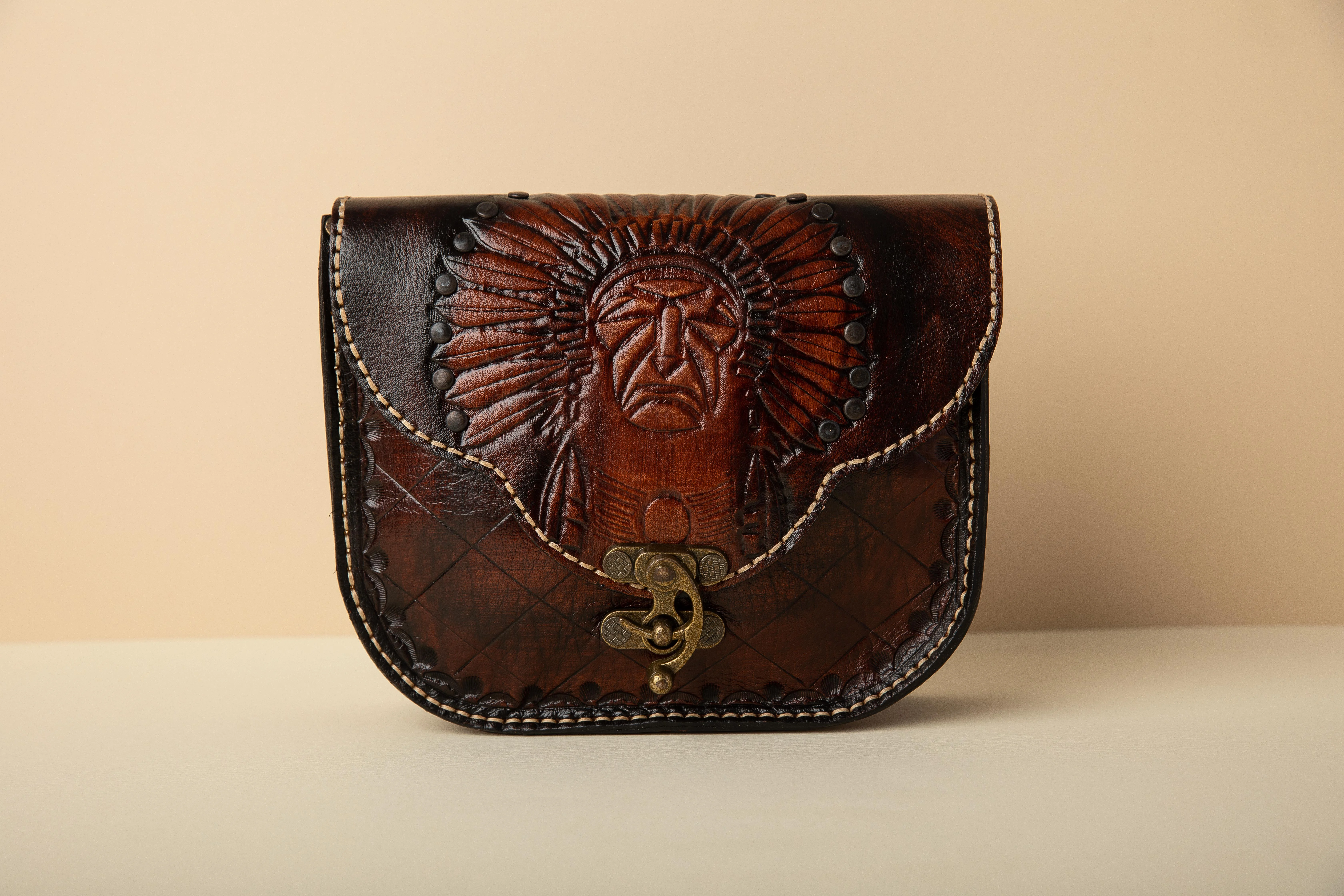 15cm x 20 cm x 7cm Fully hand embossment Internal genuine leather lining one year guarantee