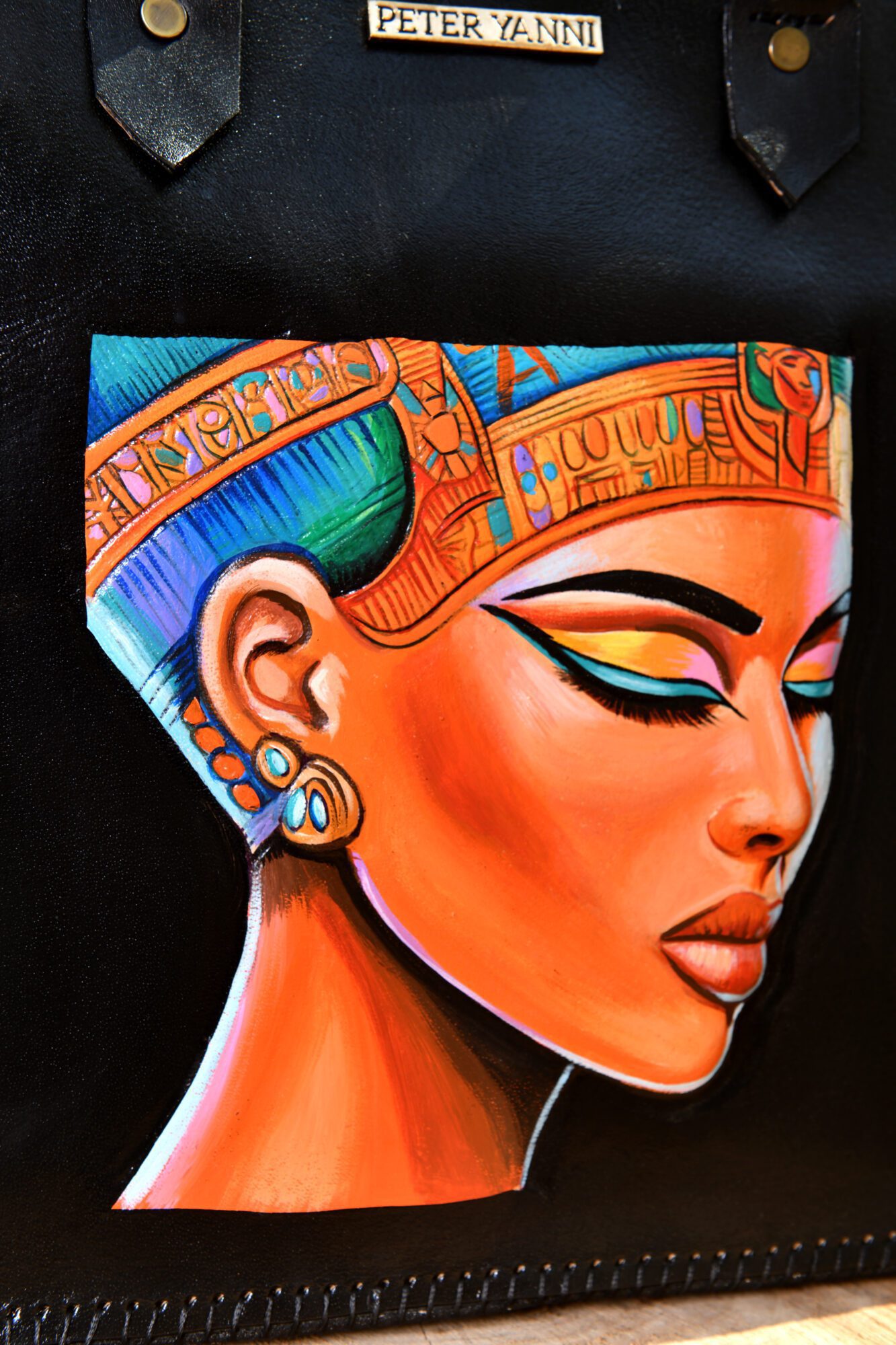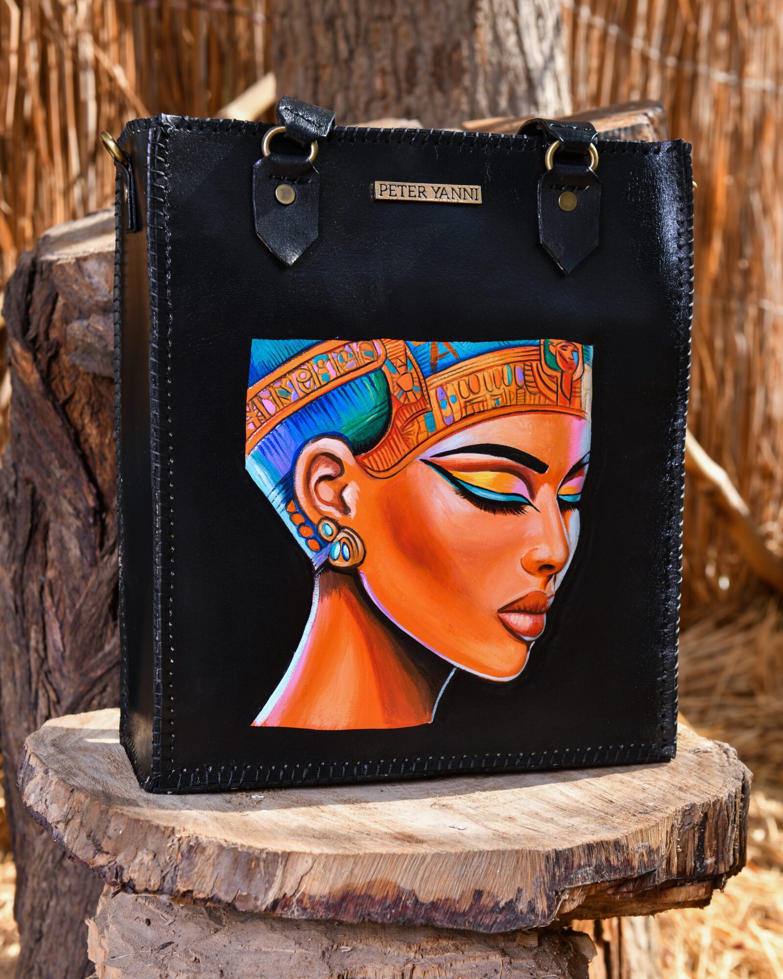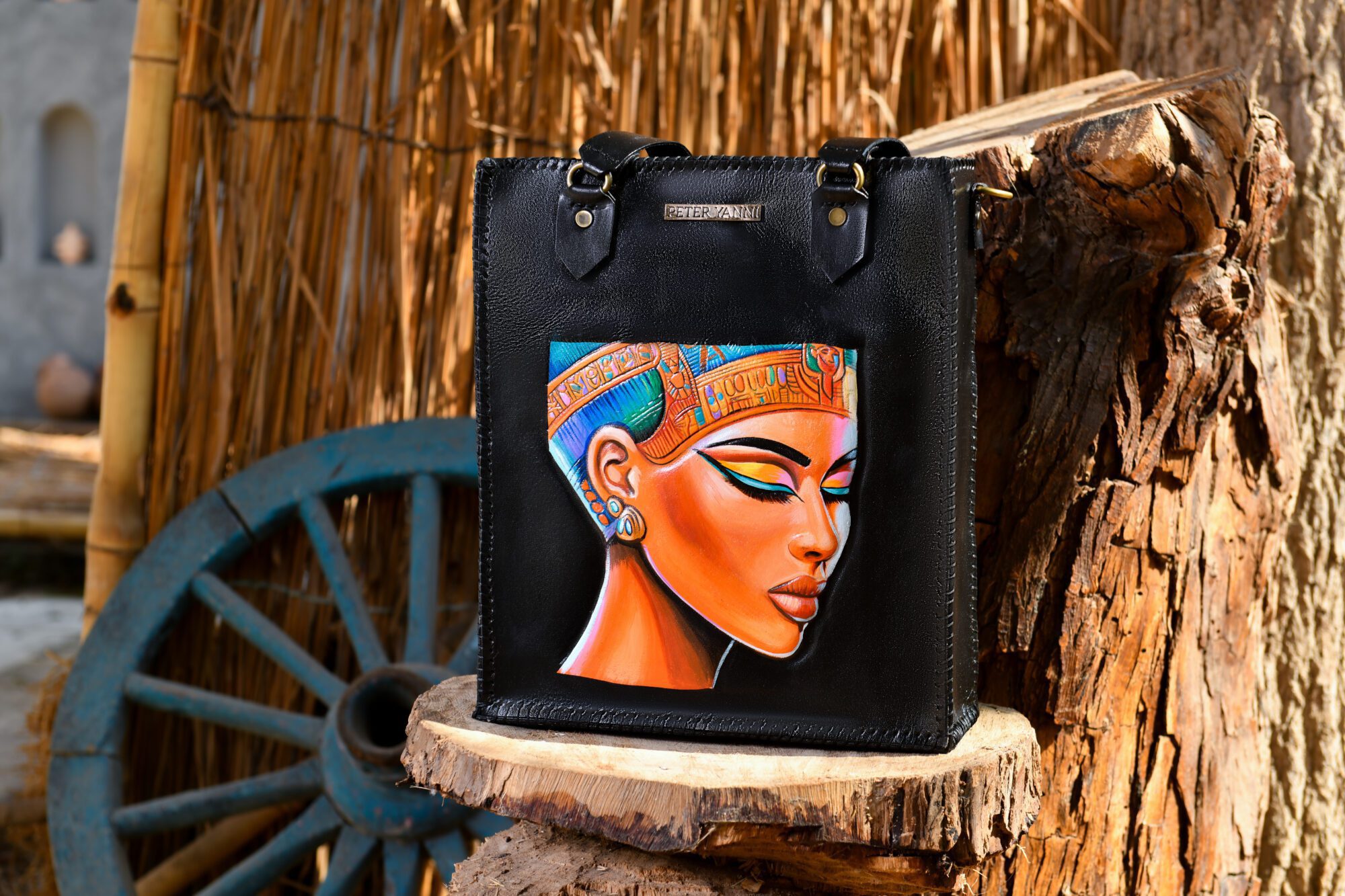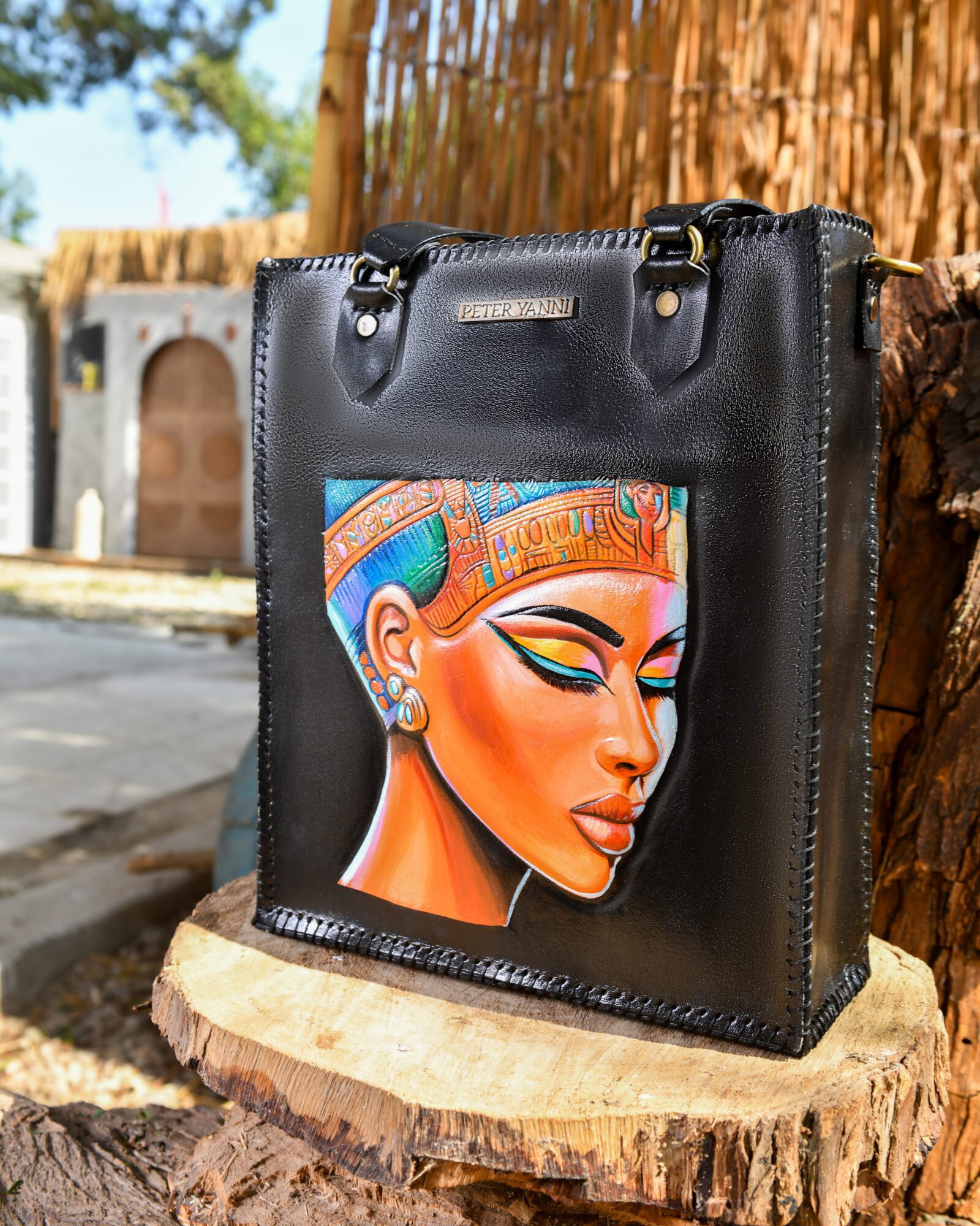 35cm x 30cm x 10cm Fully Hand-Embossed and Hand-painted Internal genuine leather lining Shoulder strap Back zipper pocket Internal Zipper pocket one year guarantee