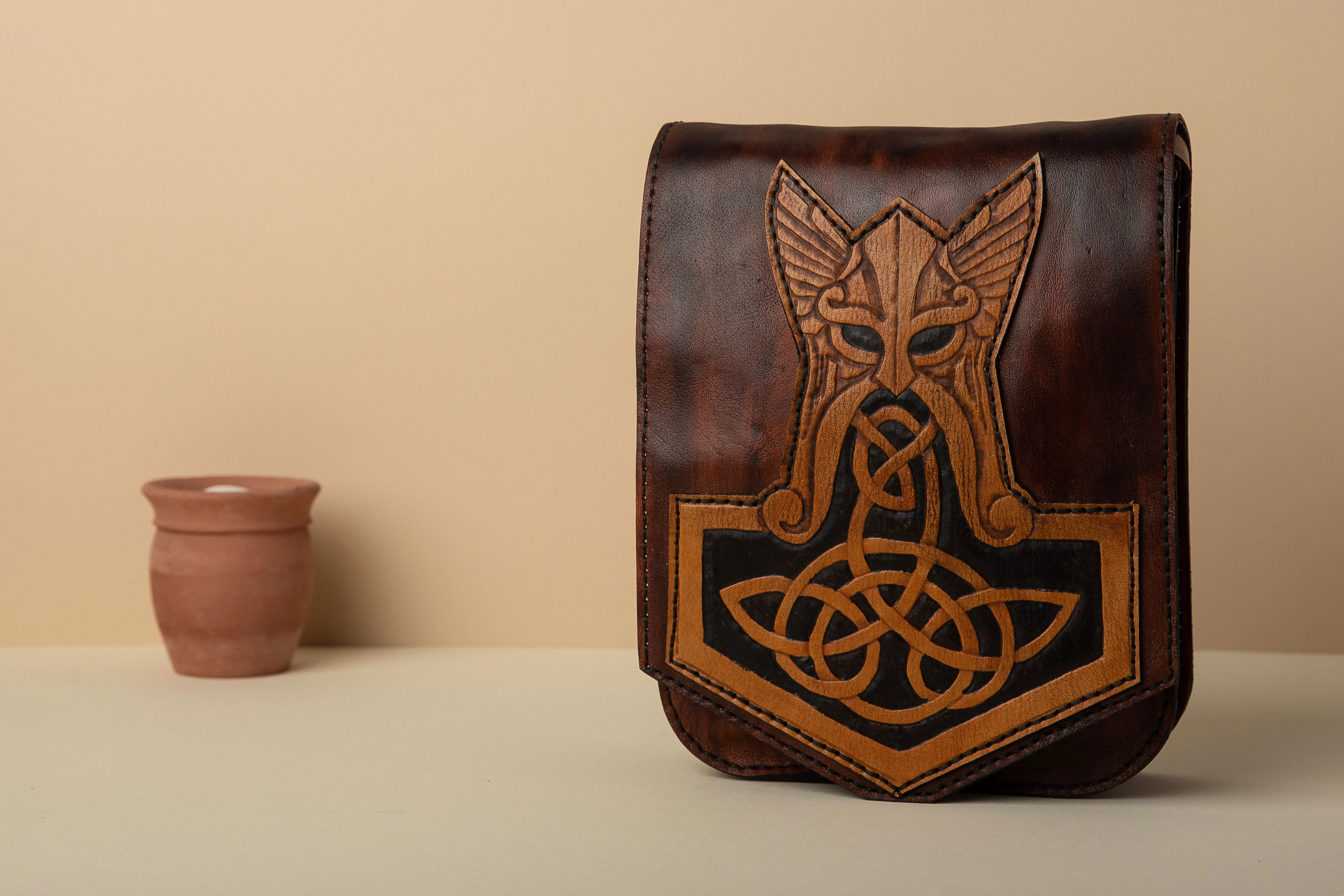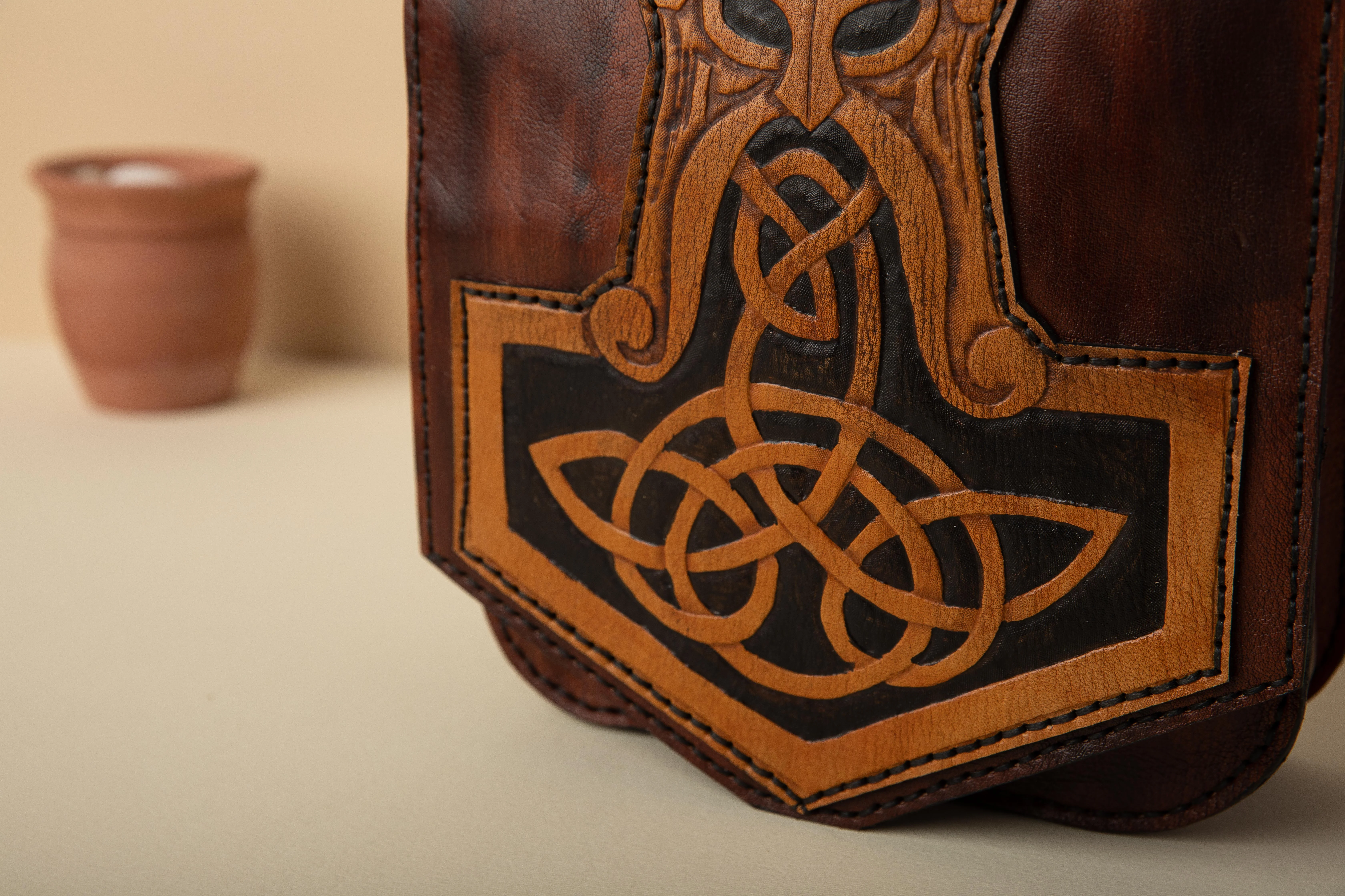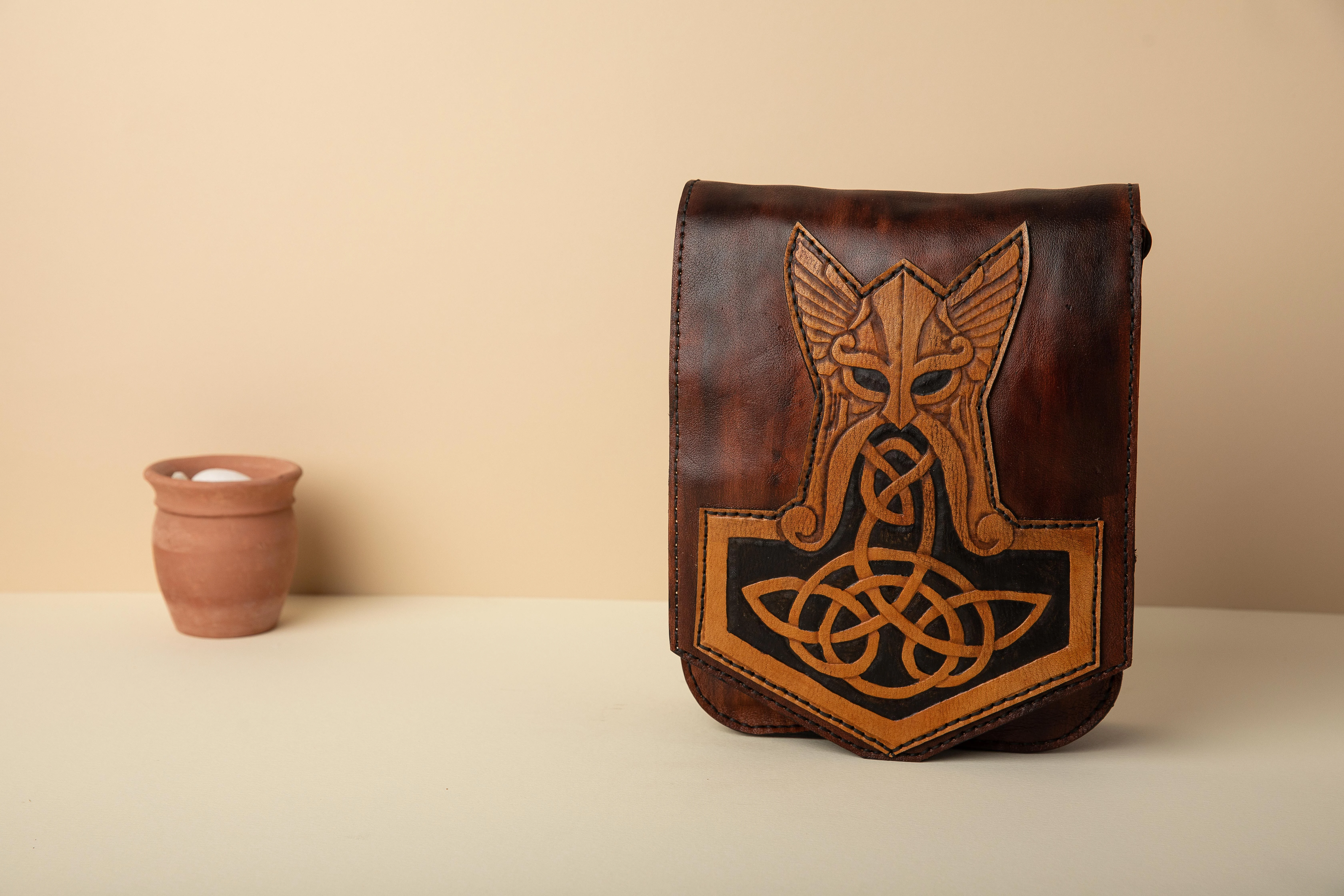 30cm x 25cm x 9cm Internal genuine leather lining Back zipper pocket one year guarantee