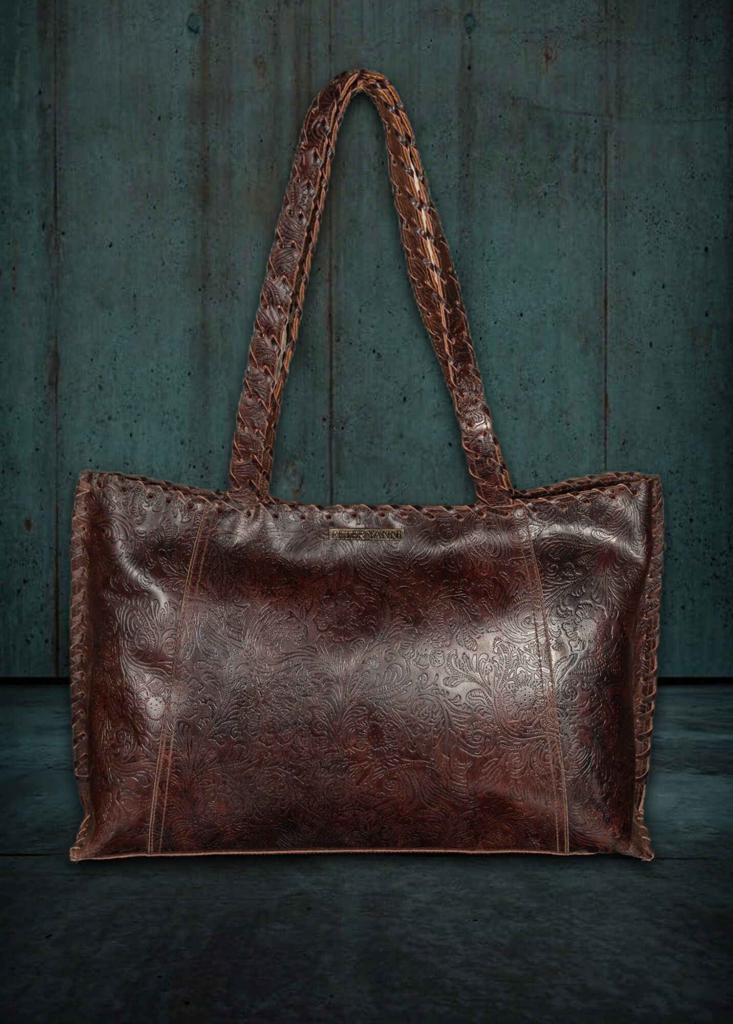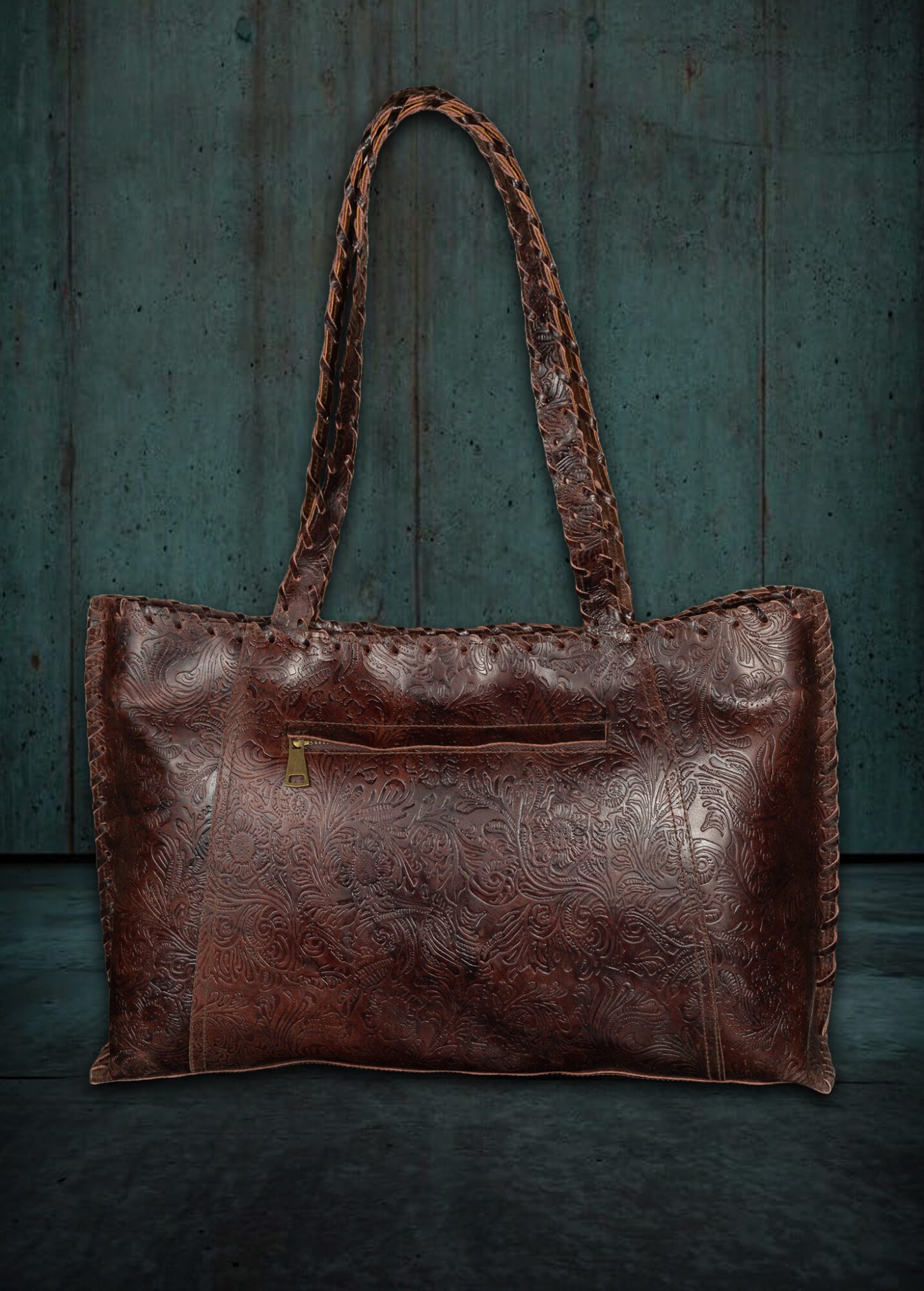 30cm x 45cm x 14 cm Huge internal capacity Two large internal chambers Zipper pocket separator Two internal zipper pockets Back Zipper pocket Genuine leather interiors Braided handles Zipper closure one year guarantee
