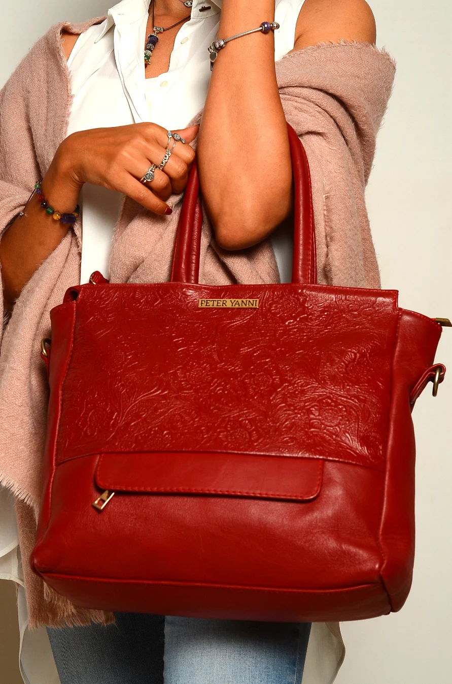 32cm x 45cm x 17cm Genuine leather interiors Internal and back zipper pockets Top Zipper Closure One year guarantee