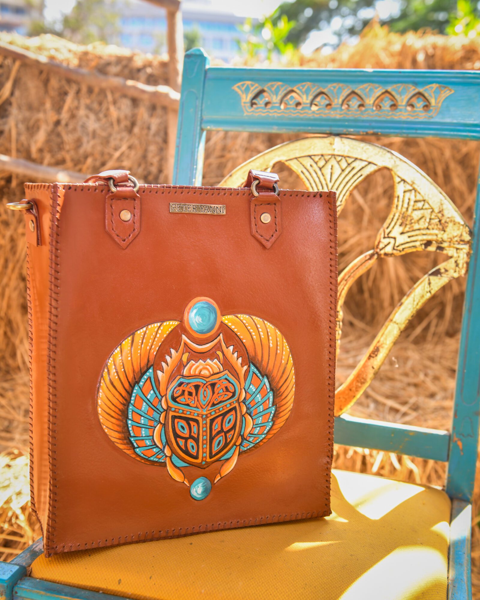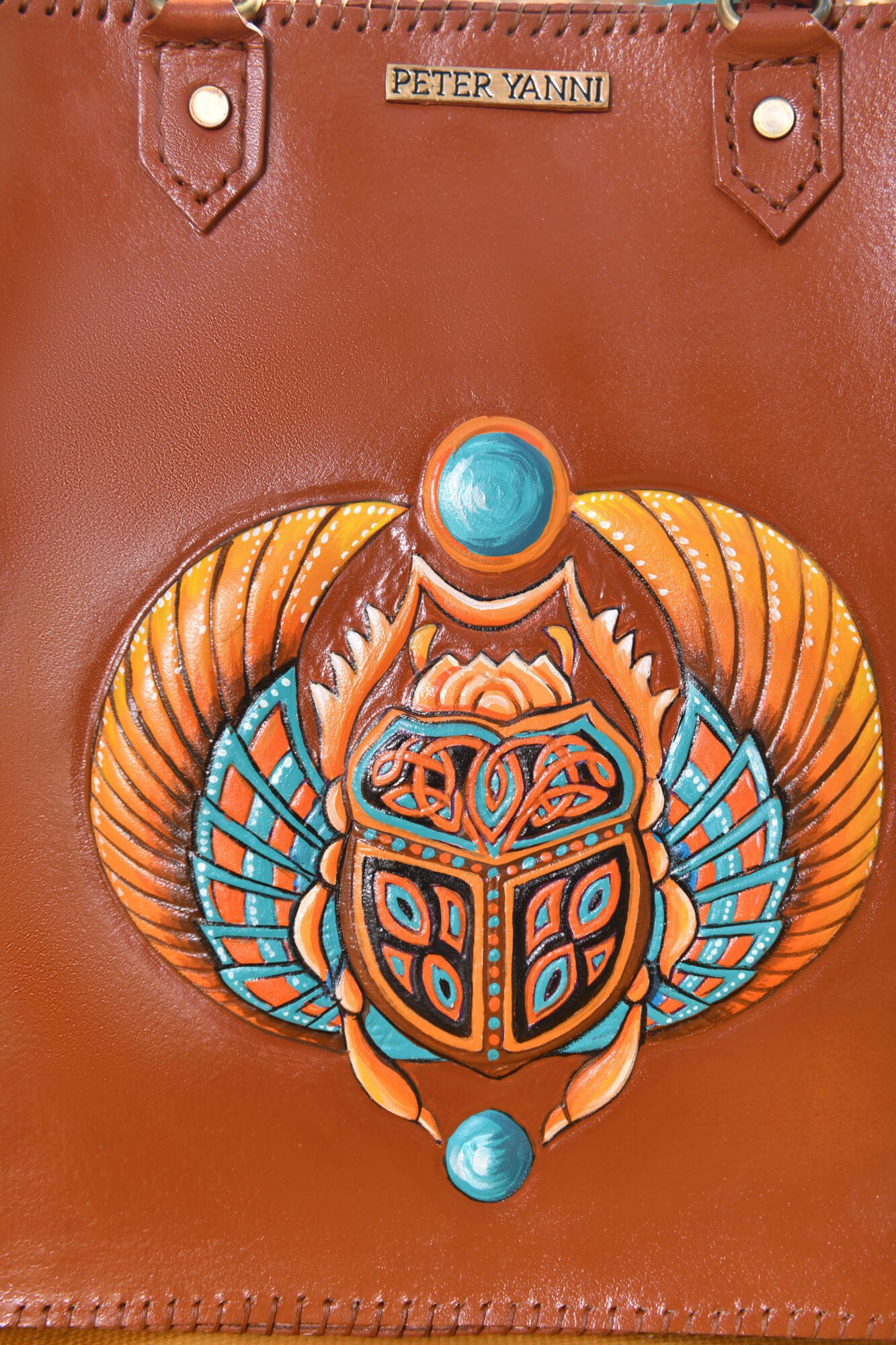 35cm x 30cm x 10cm Fully Hand-Embossed and Hand-painted Internal genuine leather lining Shoulder strap Back zipper pocket Internal Zipper pocket one year guarantee